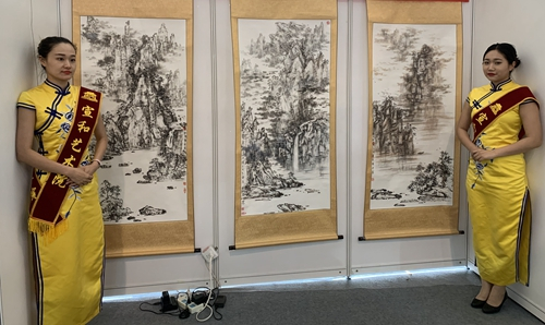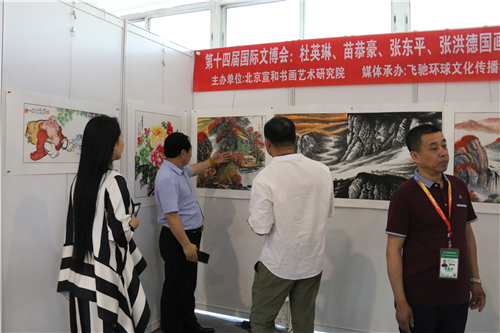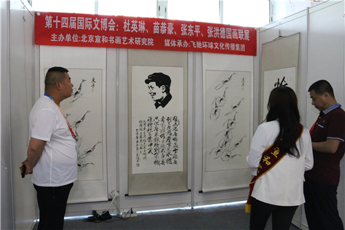 本网讯(杨东亮 冯永军报道)5月29日上午,由文化和旅游部、国家广播电视总局和北京市人民政府共同主办,北京市贸促会承办的第十四届中国北京国际文化创意产业博览会在中国国际展览中心举办。第十四届国际文博会“宣和·至臻”第二届书画家邀请展系列活动,是由北京宣和书画艺术研究院主办,飞驰环球文化传播集团媒体承办,公益在线、师说文化传媒协办,本次展出的是苗恭豪、杜林瑛、张东平、张洪德书画联展作品。出席本次画展的嘉宾有:北京宣和书画艺术研究院名誉院长、外交部原驻卢森堡大使马志学,北京宣和书画艺术研究院名誉院长、解放军某高校政委林继福将军,宣和艺术院顾问、中央军委战略规划室原副主任马建国少将,原国务院办公厅行政司党委办主任白雁,原国家人事部办公厅副主任齐国章,总参陆航学院原政委、电视剧《亮剑》片头题写者崔根峰将军,宣和艺术院执行院长单玉志、常务副院长许顺喜,秘书长杨东亮,副秘书长冯永军等嘉宾及媒体到场祝贺。